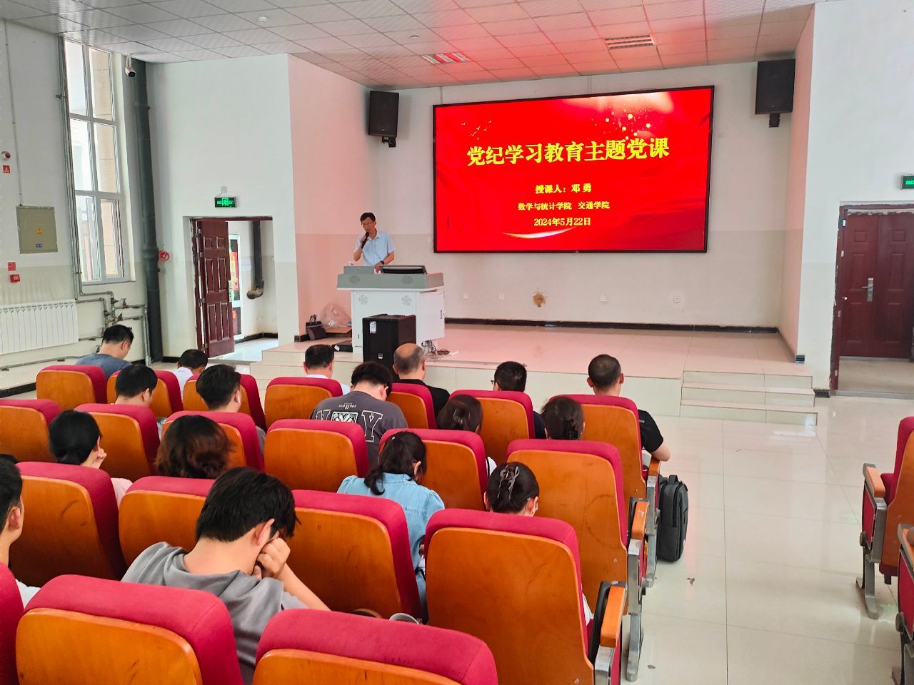 为深入学习贯彻习近平总书记的重要讲话和重要指示精神,高标准高质量开展党纪学习教育,2024年5月22日下午,喀什大学数学与统计学院党委邀请了校党委常委、校党委副书记邓勇,为数学与统计学院与交通学院共同开展了党纪学习教育主题党课。